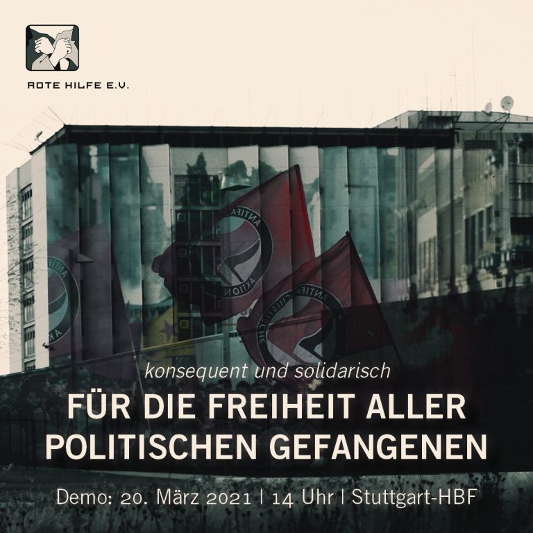 Die Rote Hilfe e.V. ruft mit einem extra Aufruf dazu auf, die Demonstration am 20. März zu unterstützen: