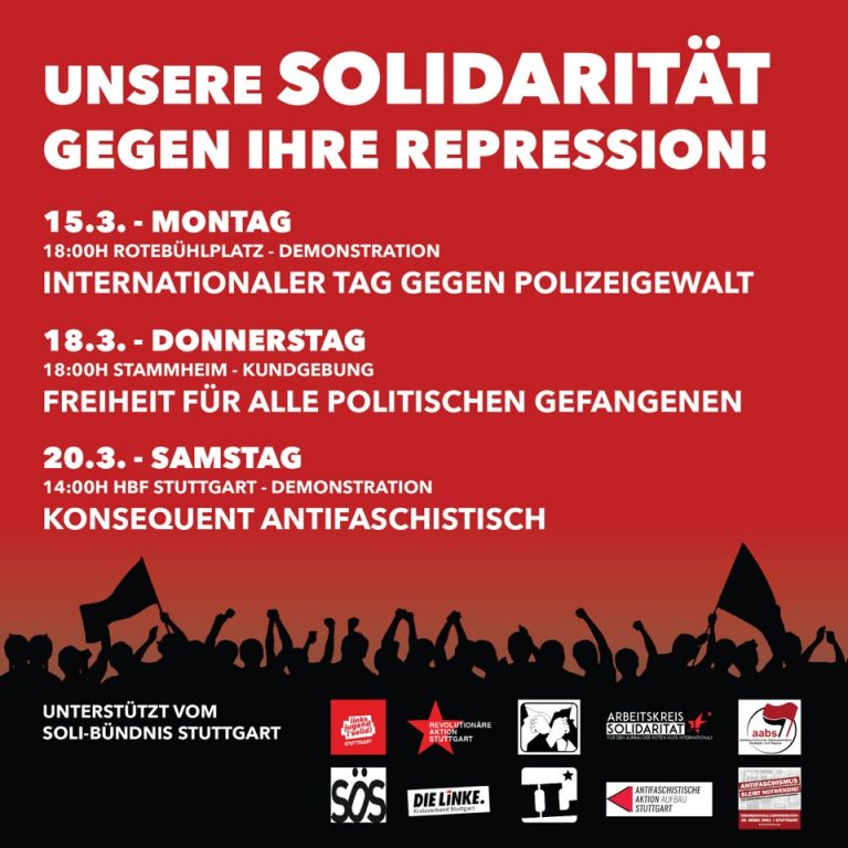 18 Uhr JVA Stuttgart-Stammheim – Kundgebung zum internationalen Tag der politischen Gefangenen