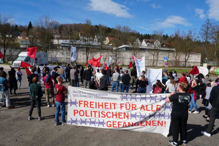 Aktuell sitzen in verschiedenen Städten in Baden Würtemeberg Genoss:inen in Haft. Wir haben mit einer Bustour einige der Genoss:innen besucht. Mit zwei Bussen und an die 100 Personen haben wir so die Gefangenen nicht nur symbolisch, sondern auch ganz konkret zum Mittelpunkt der diesjährigen Aktivitäten zum 18. März gemacht.