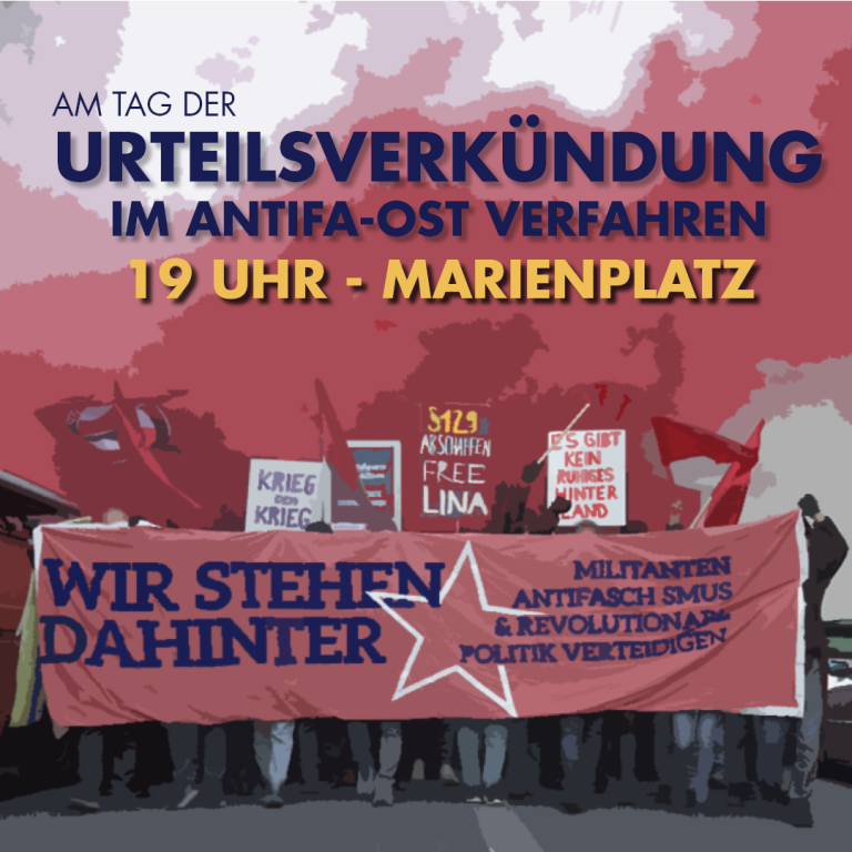 Weiterlesen: Urteilsverkündung im Antifa-Ost-Verfahren: Aufruf zur Kundgebung