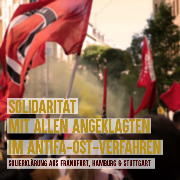Wir bleiben also nach wie vor ungebrochen solidarisch mit den Angeklagten und weiteren Beschuldigten im Antifa-Ost Verfahren, daran wird kein Schuldspruch des Gerichtes etwas ändern – egal wie das Urteil sein wird.