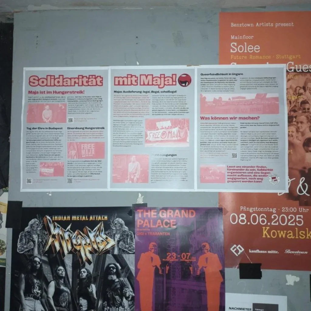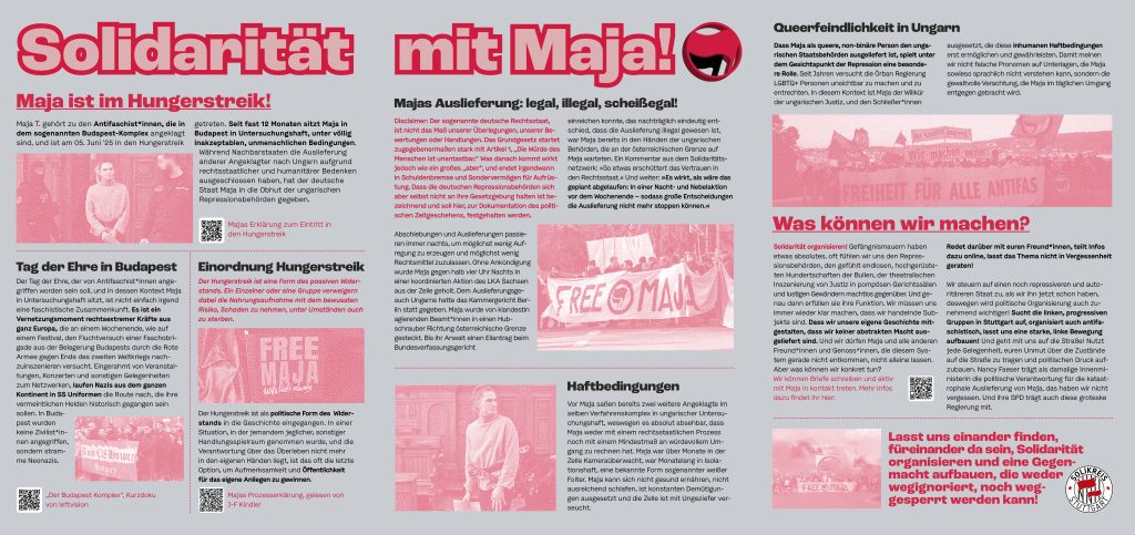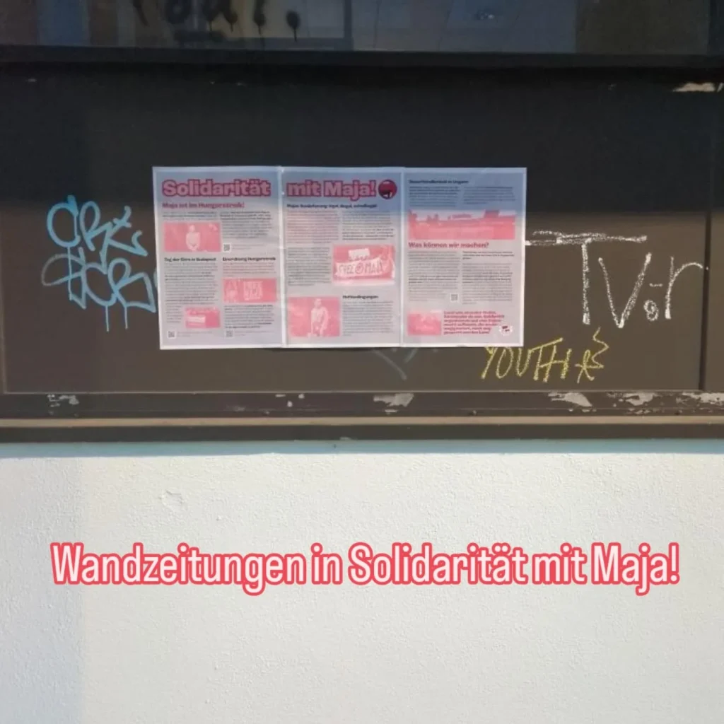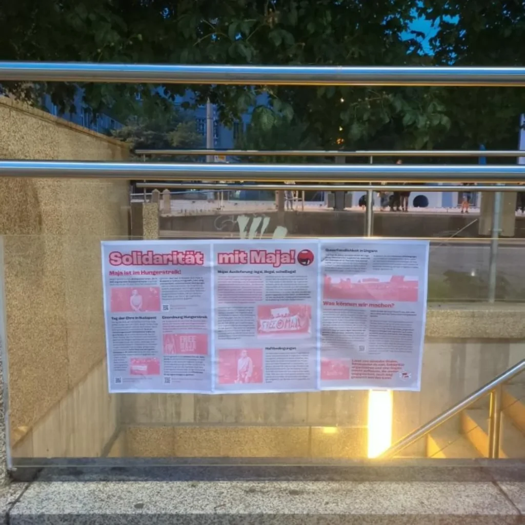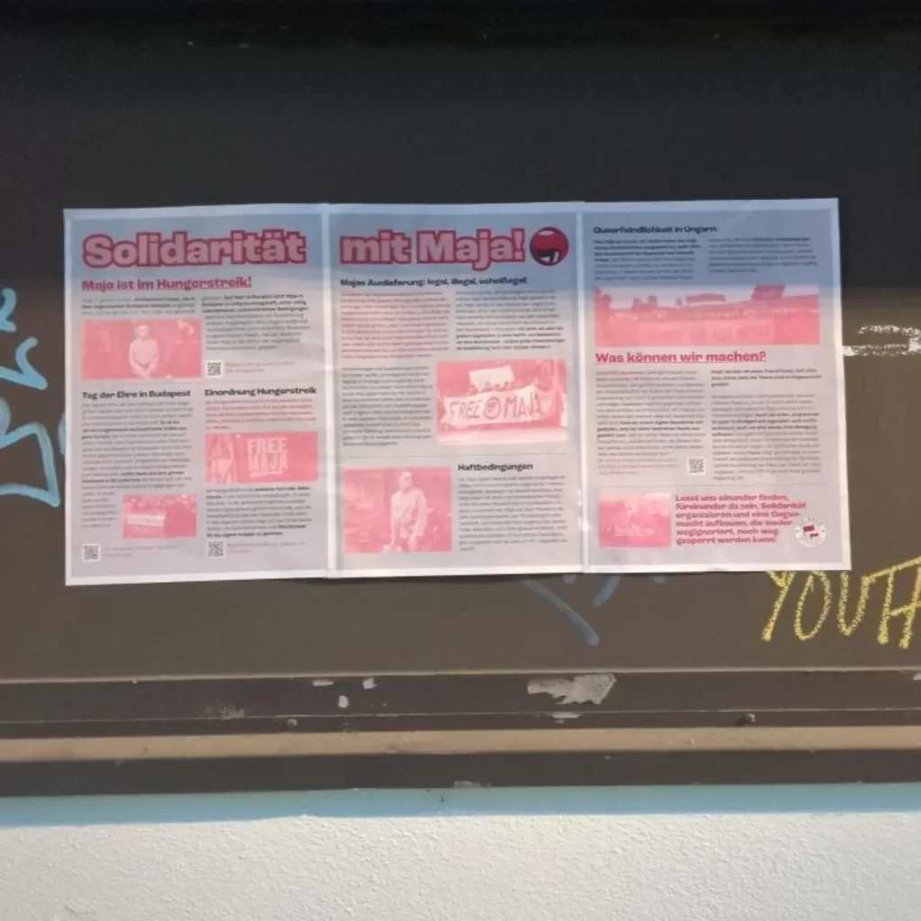In Solidarität haben wir eine Wandzeitung erstellt, in der sowohl auf den "Budapest Komplex" als auch auf die Haftbedingungen in Ungarn, sowie den Hungerstreik als Form des Widerstands eingegangen wird.