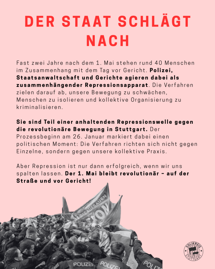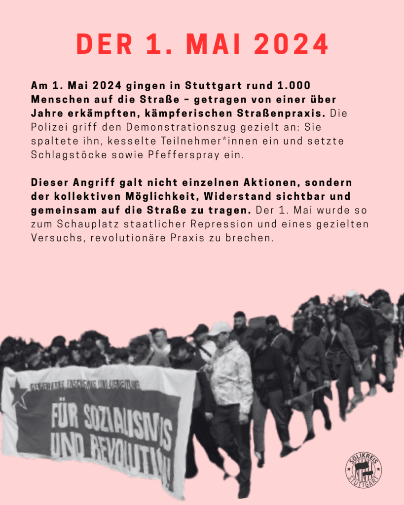 Fast zwei Jahre nach dem 1. Mai stehen rund 40 Menschen im Zusammenhang
