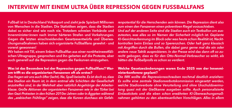 Die steigende Repression bekommen nicht nur politische Bewegungen sondern auch organisierte Fußballfans zu spüren. In einem Interview mit einem Ultra aus NRW wird auch diese Perspektive beleuchtet: